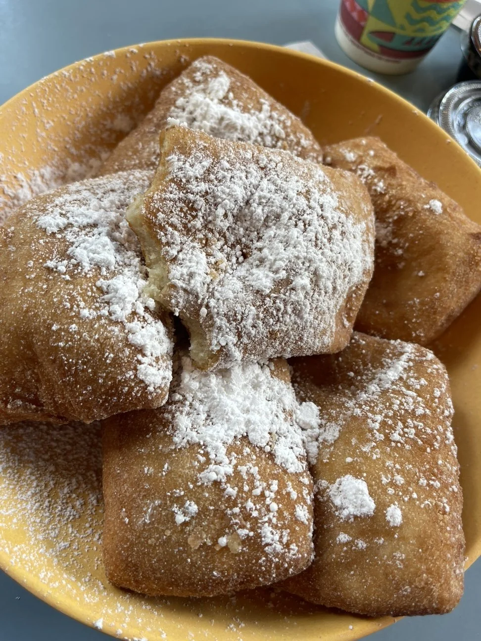 My tips: Be sure to visit the location on Decatur across from Jackson Square for the quintessential experience. Get there right when they open, as there will be a line down the block for most of the day. And just trust me on this: don’t wear dark colored clothing unless you want to look like a reverse Dalmatian all day.